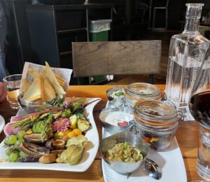 Or…have a lovely mocktail or a glass of sparkling water. Whatever suits you best. That’s the fun of charcuterie. It can be anything!